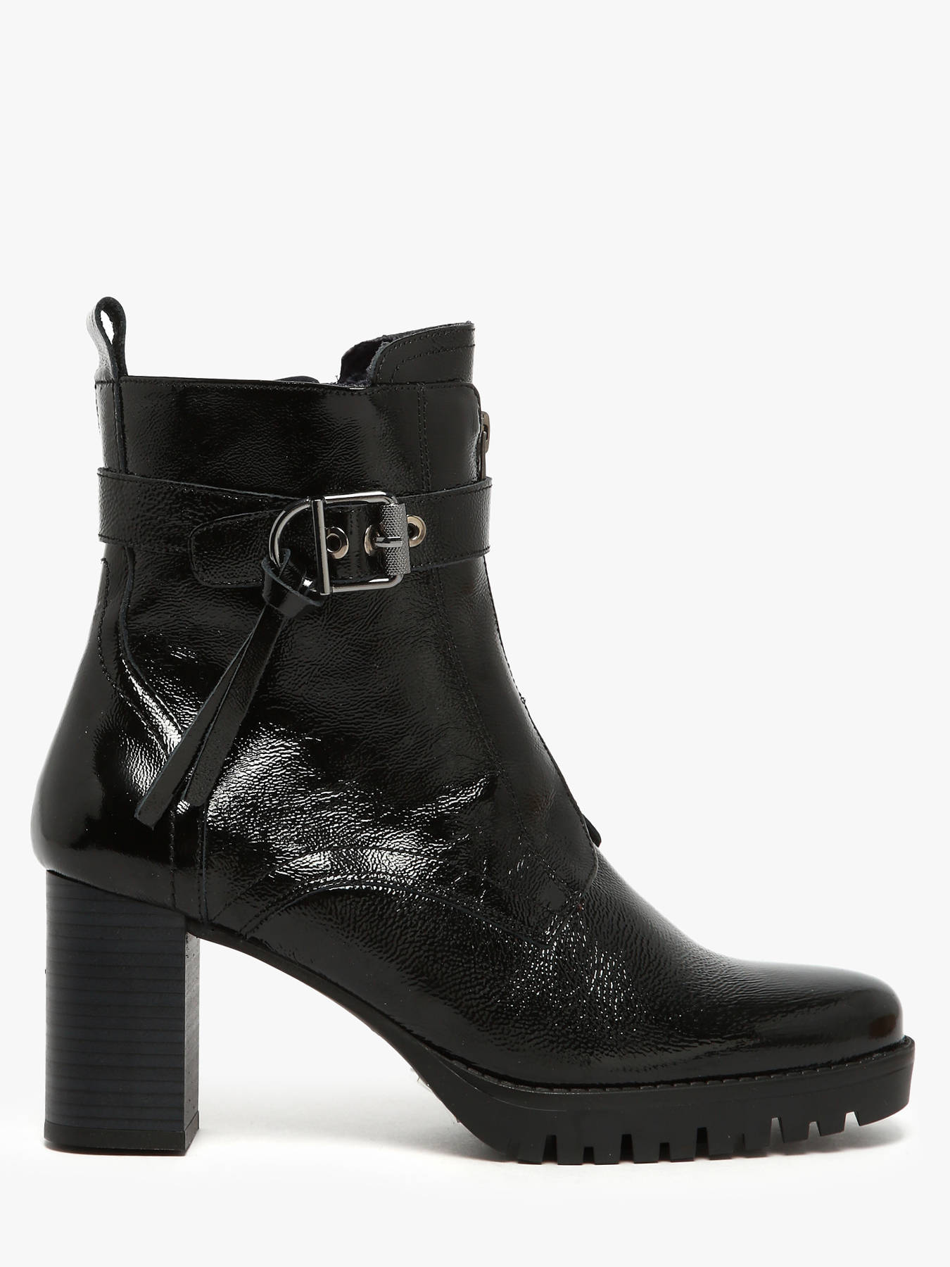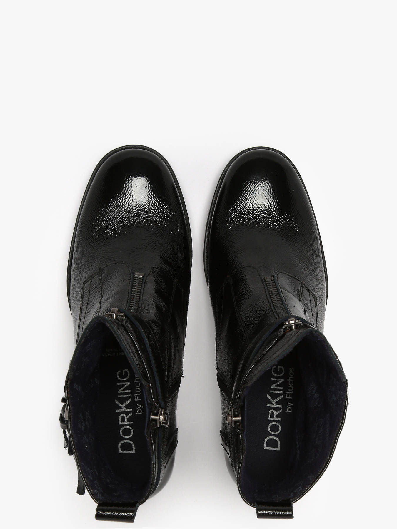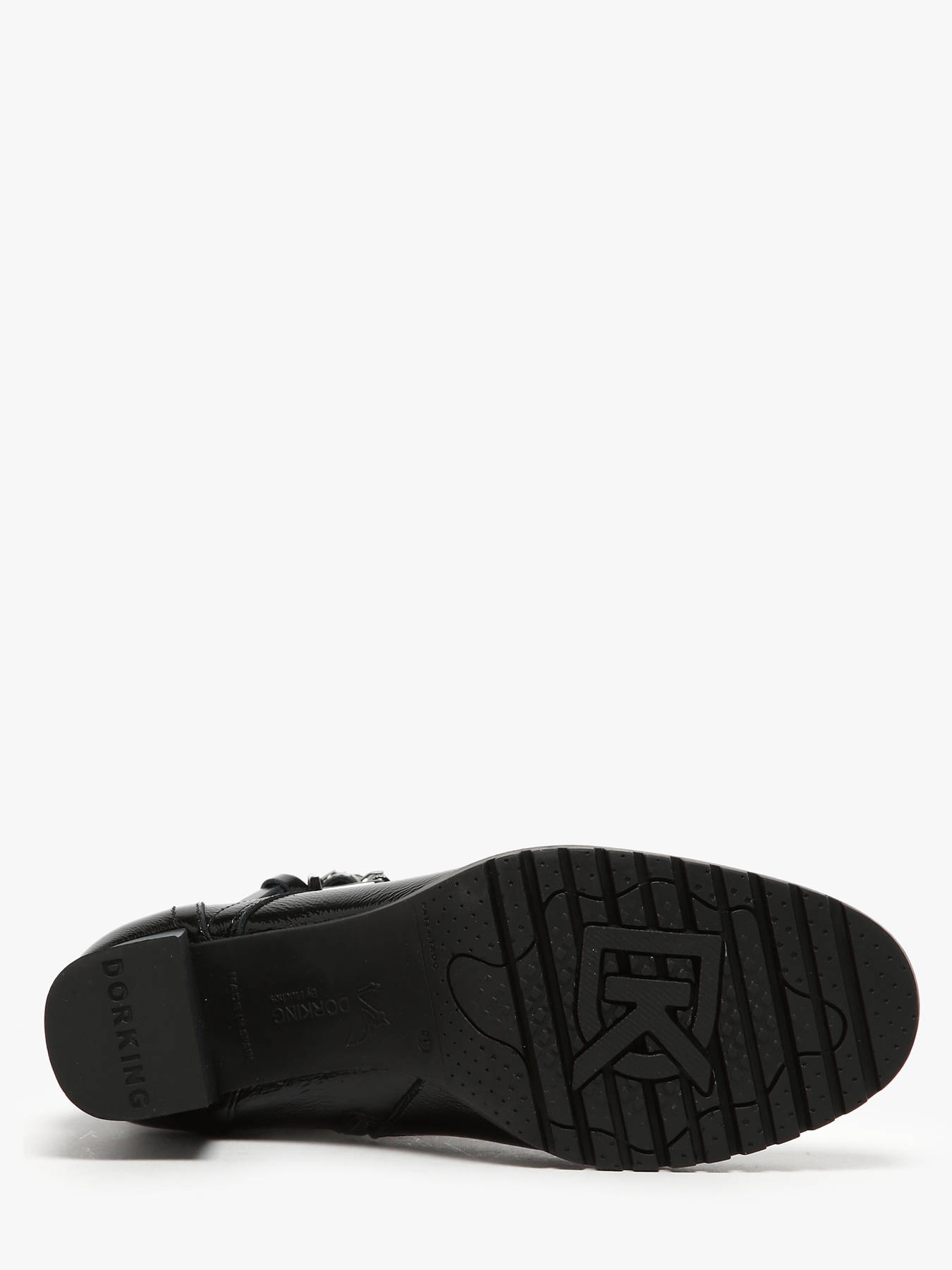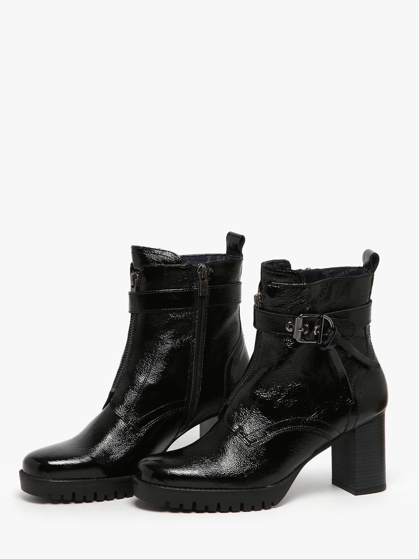 Élégantes et modernes, les bottines à talon Evie de DORKING en vernis noir allient style et confort pour un usage quotidien. Conçues en cuir de qualité avec une finition vernis brillante, elles apportent une touche sophistiquée à toutes vos tenues. La doublure et la semelle intérieure en textile garantissent un confort optimal tout au long de la journée, tandis que le talon de 7,5 cm avec plateforme frontale offre une silhouette flatteuse et stable. La fermeture à glissière latérale facilite l’enfilage et le retrait. Polyvalentes et chic, ces bottines se portent aussi bien avec un pantalon élégant qu’avec une robe habillée. Evie devient un incontournable de votre garde-robe pour cette saison, alliant confort, qualité et raffinement.