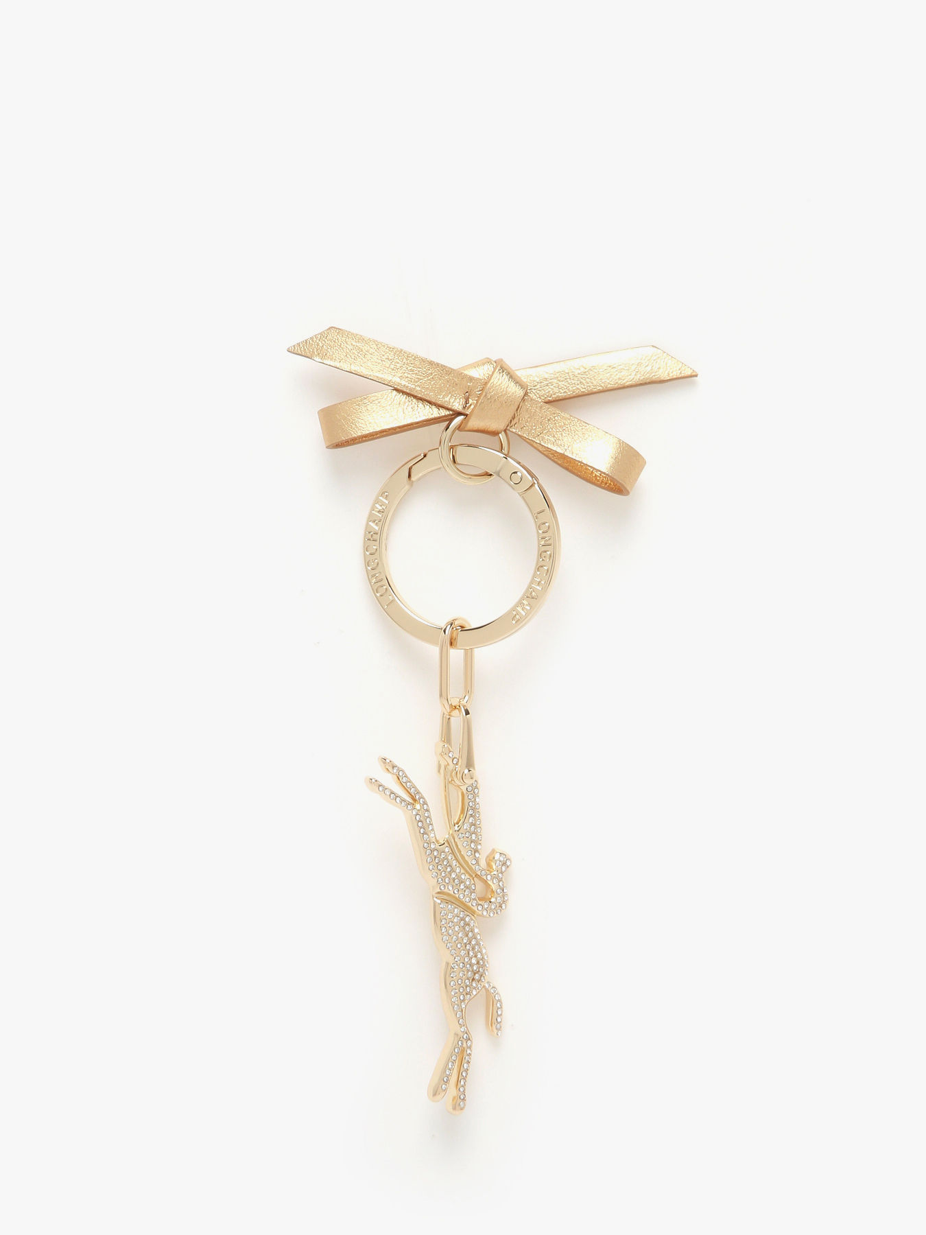 Le porte-clés LONGCHAMP, composé de métal, présente un mousqueton pratique orné d’un cuir mettant en valeur le logo de la Maison dans une version stylisée et épurée. Il est rehaussé d’un élégant nœud doré pâle, apportant une touche délicate et raffinée à cet accessoire fonctionnel. Parfait pour personnaliser vos sacs ou clés avec subtilité et élégance, ce porte-clés allie design minimaliste et sophistication, reflet du savoir-faire de Longchamp.