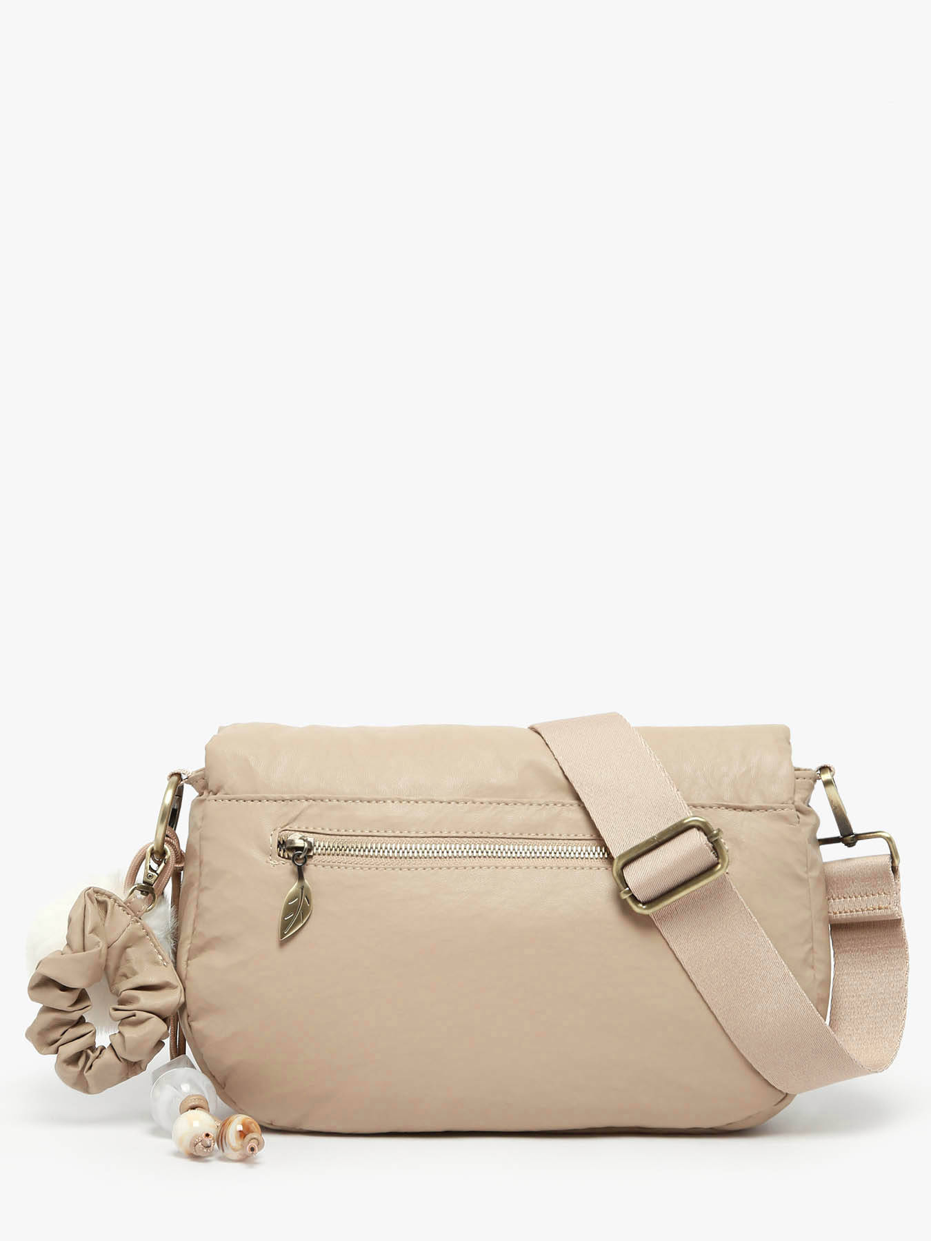 Ce sac bandoulière WOOMEN de la ligne ALIZIER grand format combine élégance et fonctionnalité avec son rabat aimanté, sa fermeture zippée intérieure et sa bandoulière réglable et amovible imprimée ""WOOMEN"". Confectionné en polyuréthane avec doublure coton et lin, il offre un compartiment unique, deux poches simples et une poche zippée. Son bijou de sac orné d'un chouchou, perles et pompon ainsi que son logo W en métal complètent ce modèle raffiné.