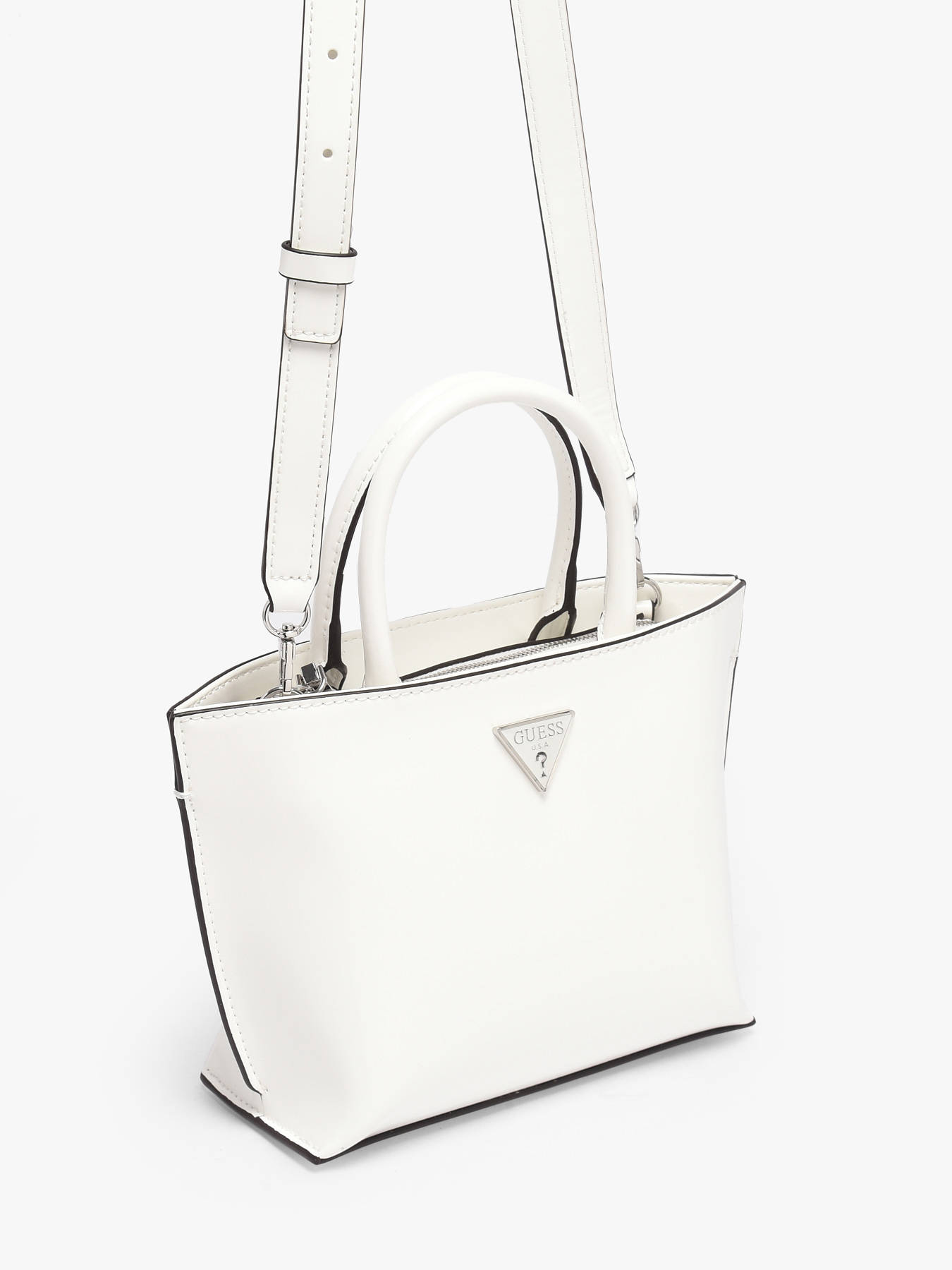 Le sac porté main ARNELA GUESS, réalisé en P.U., allie élégance et praticité. Son extérieur est doté d’une fermeture zippée sécurisée et d’une anse de 10 cm pour un porté à la main confortable. La bandoulière réglable et amovible permet également un porté en bandoulière selon vos envies. À l’intérieur, ce sac propose un compartiment unique, agrémenté d’une poche zippée pour un rangement sécurisé, ainsi que trois emplacements pour cartes bancaires, parfaits pour garder l’essentiel organisé. L’ARNELA est idéal pour celles qui recherchent un sac polyvalent et chic, adapté à toutes les occasions.