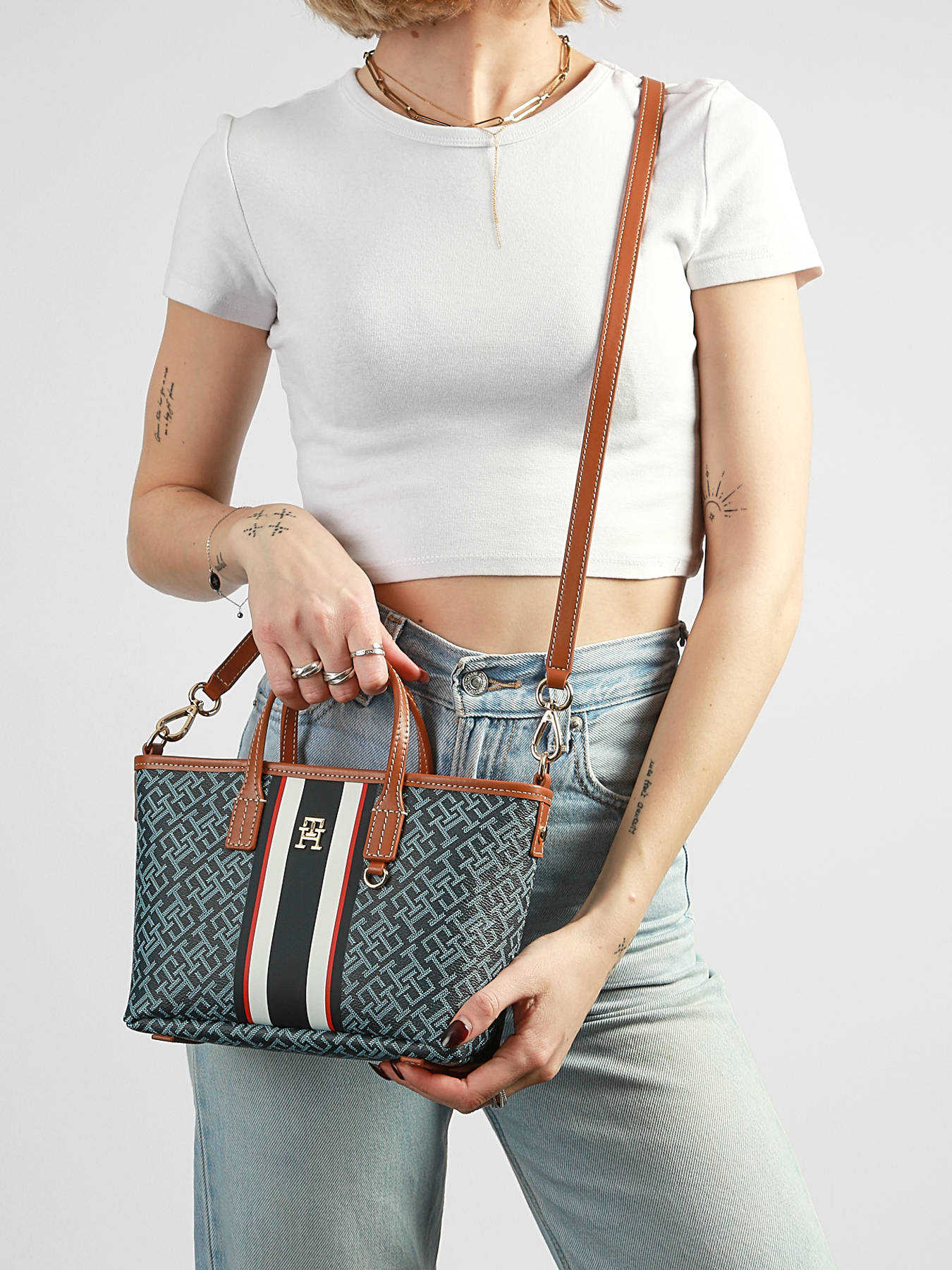 Le sac porté main TH MONOPLAY TOMMY HILFIGER en toile enduite garnie cuir allie style moderne et praticité au quotidien. Sa fermeture zippée sécurise vos effets personnels tout en facilitant un accès rapide à vos essentiels. L’intérieur se compose d’un compartiment principal, offrant un rangement simple et organisé pour vos affaires. Compact et léger, ce sac peut se porter à la main grâce à sa hauteur d’anse de 7 cm ou en bandoulière grâce à sa bandoulière réglable et amovible, pour un confort adapté à toutes vos activités. Son design épuré et structuré apporte une touche chic et contemporaine à vos tenues, idéal pour un usage quotidien, urbain ou professionnel. La qualité des matériaux et les finitions soignées reflètent le savoir-faire TOMMY HILFIGER, faisant de ce modèle un accessoire durable, pratique et stylé, parfait pour accompagner vos journées avec élégance et simplicité.