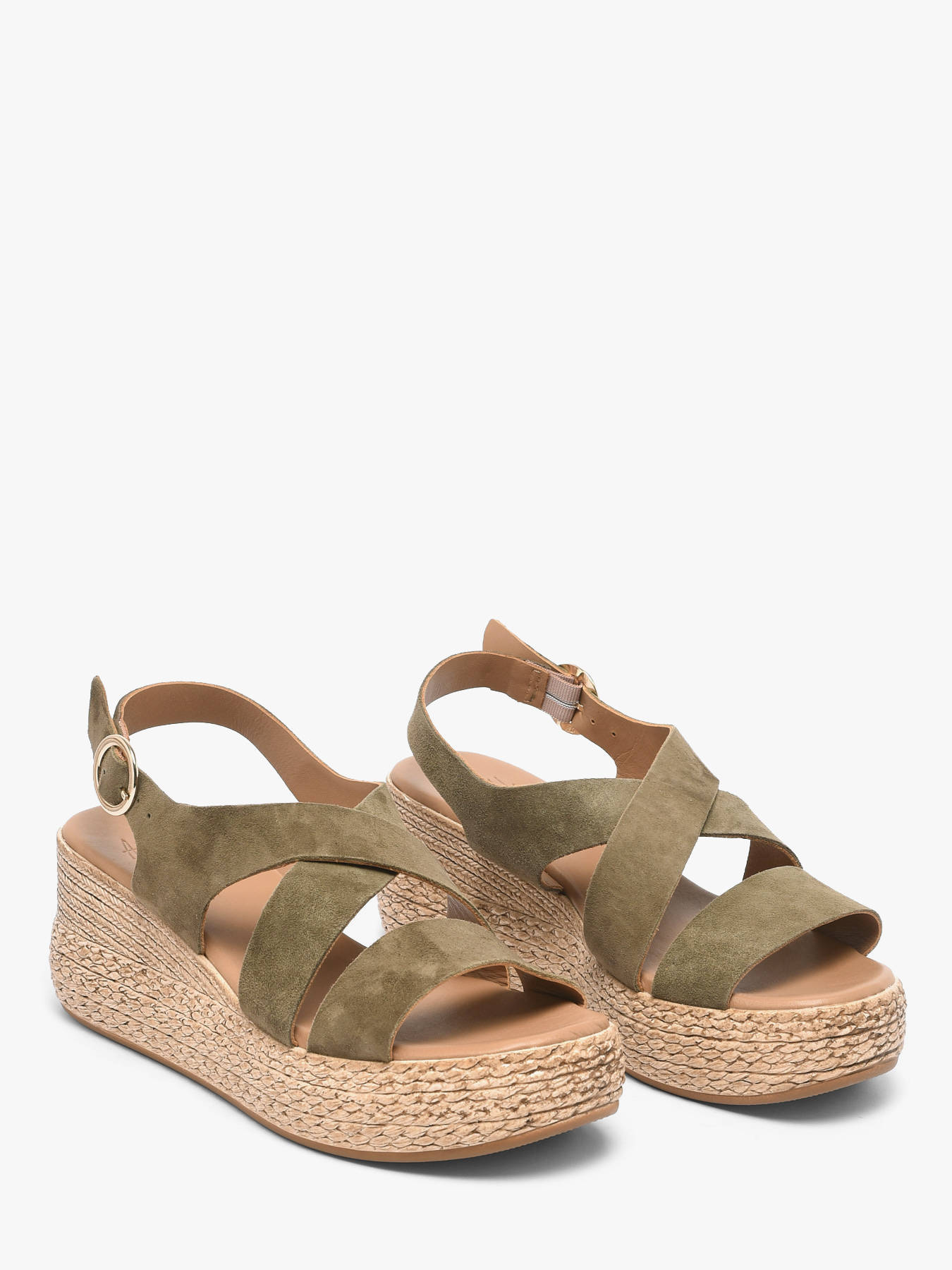 Adoptez une allure estivale élégante avec les sandales à talon compensé ALIWELL, pensées pour allier confort et féminité au quotidien. Leur talon compensé de 6,5 cm offre une excellente stabilité tout en sublimant la silhouette avec naturel. Déclinées dans une teinte kaki tendance, elles s’accordent facilement avec toutes vos tenues d’été. Le dessus en cuir avec finition daim apporte une touche douce et raffinée, idéale pour un style casual chic. La doublure et la semelle intérieure en cuir assurent un confort durable et une sensation agréable à chaque pas. Grâce à leur fermeture par boucle, ces sandales s’ajustent parfaitement à la cheville pour un maintien sécurisé. Parfaites pour la saison estivale, elles se portent aussi bien en journée qu’en soirée. Les sandales compensées ALIWELL sont le choix idéal pour conjuguer style, confort et élégance naturelle.