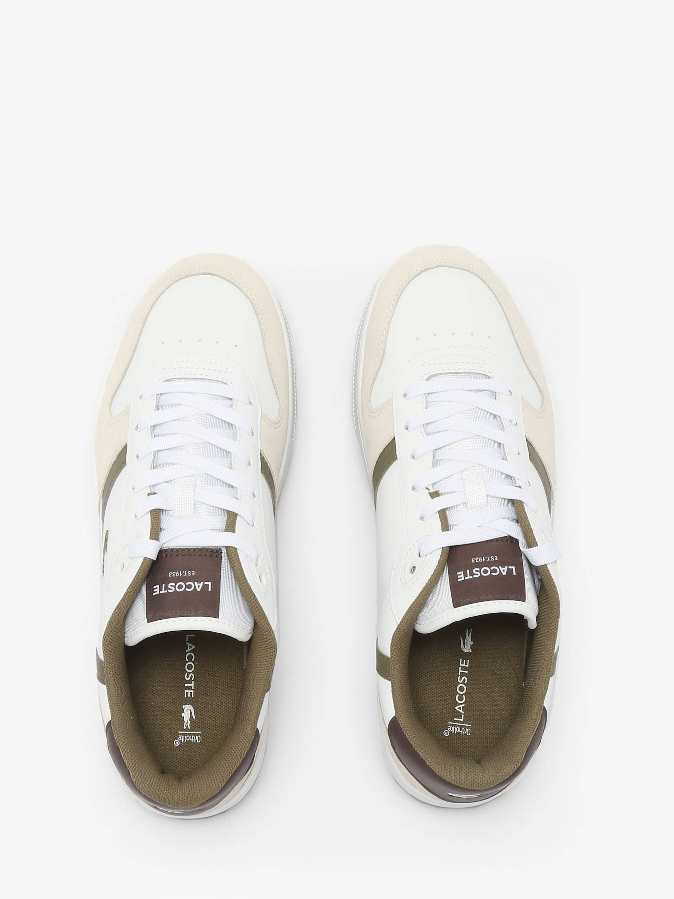 Les sneakers T-Clip Set de LACOSTE réinterprètent avec style les codes du tennis des années 1980. Leur tige en cuir blanc est sublimée par des empiècements suédés kaki et des finitions vintage soignées pour un look rétro authentique. Le crocodile débossé au centre signe l’élégance emblématique de la marque. Alliant confort, qualité et allure, ces sneakers offrent un parfait équilibre entre esprit sportif et sophistication urbaine. Un modèle iconique à adopter au quotidien.